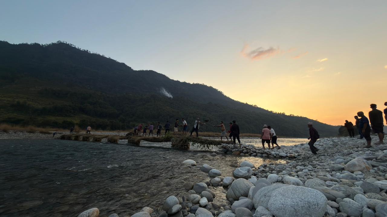 धादिङ जिल्लामा प्रख्यात त्रिपुरासुन्दरी माईको जात्रा अवलोकन गर्न आँखुखोलामा धुले पुल निर्माण गर्दै स्थानीय ।